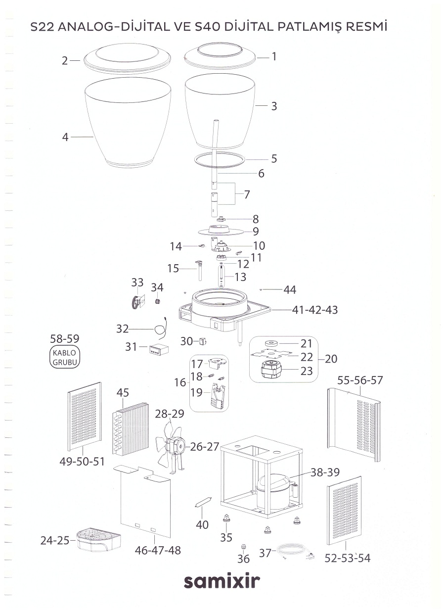 Samixir yuvarlak hazneli 40 litre hazne kapağı